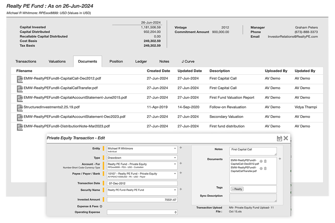 Easily tag, store and access all capital commitment, drawdowns and quarterly fund reports.